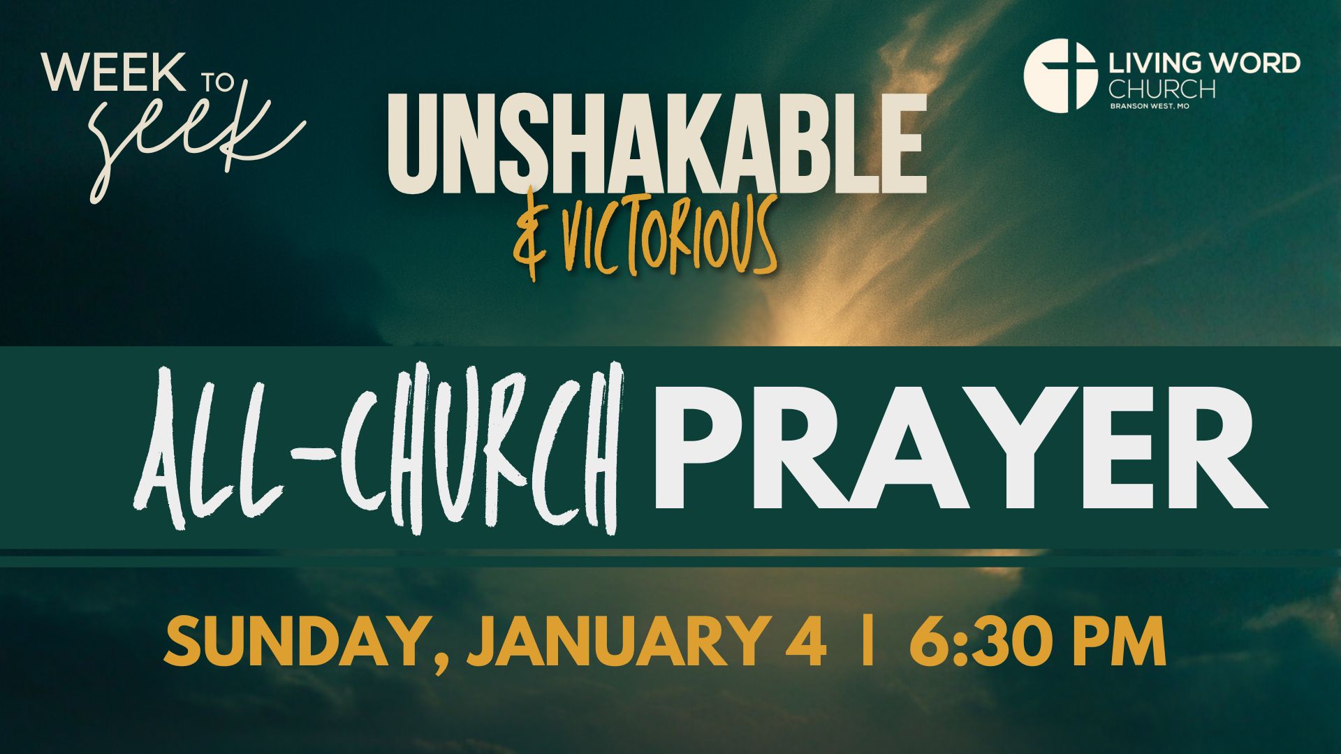 Sunday, January 5th - All Church Prayer - MOVED TO JANUARY 12TH
